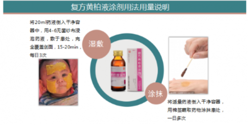 该建议指出选择具有清热、解毒、除湿、收敛、止痒等作用的常用药物,以外用药物为主,其中《建议》中明确提出复方黄柏液涂剂可用于多种病症的治疗中,包括皮肤潮红、破损、不同皮损类型的接触性皮炎、尿布皮炎、热性皮炎及痱子、毛囊炎等。
