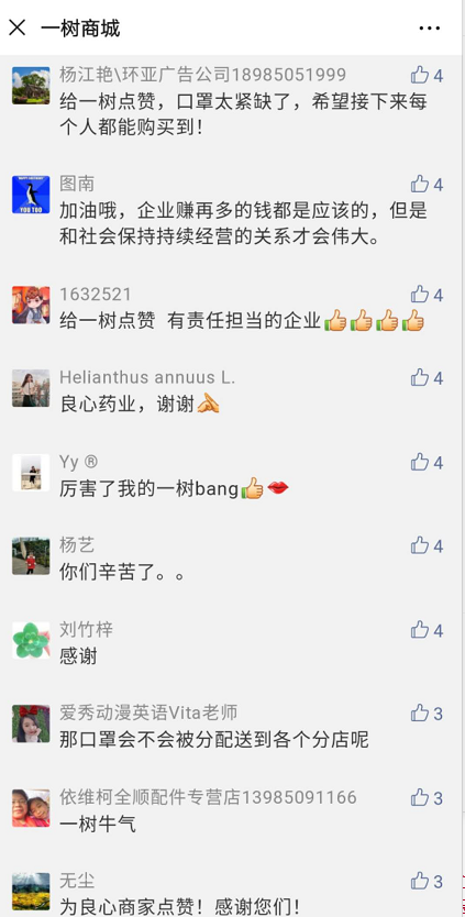 全员连续工作40天,百万口罩投放给贵州全省百姓 疫情扩散,物流停运,厂家放假,全国人民都在疯狂地寻找口罩,此时,对于任何人来说,想要找到货源都是十分困难的,而一树药业做到了。从疫情开始,一树药业就派出“海军(海外采购军团)”,奔赴到印度尼西亚、日本、韩国等地区,为贵州省老百姓采购医用口罩和防控物资。 2月9日,在印度尼西亚采购到的200万只口罩陆续抵达贵阳市,这批口罩随后也都投放到贵州市场,让医务人员和老百姓高兴不已,接连在一树商城内留言感谢。
