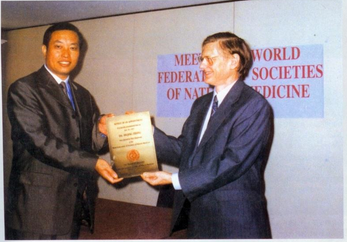 世界自然医学会主席布朗先生向张必清教授颁发世界自然医学联合会副主席聘书