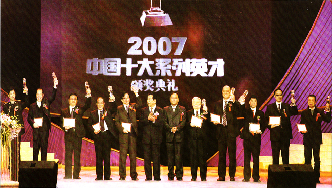 全国人大常委原副委员长、联合国教科文组织驻华代表为中国十大科技英才颁奖右二为张必清教授