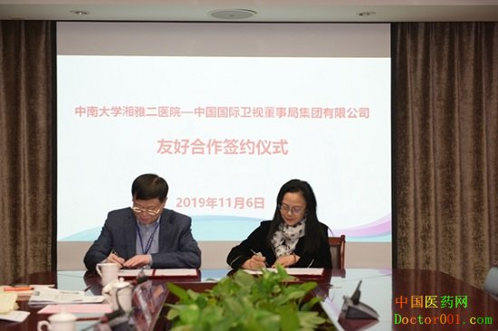 11月6日上午,中南大学湘雅二医院与中国国际卫视正式签署战略合作协议,携手打造“中国国际卫视湘雅二医院频道”。湘雅二医院党委书记罗爱静,院长周智广,中国国际卫视总台台长李曼华以及相关职能部门负责人参加了签约仪式。