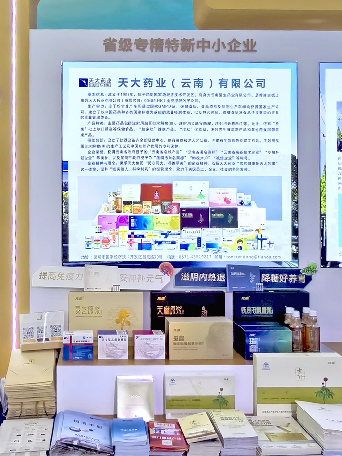 (2025年6月30日,香港) —— 作为云南省生物医药产业的杰出代表,天大药业(云南)有限公司( “公司” )携核心产品与创新成果,亮相备受瞩目的第十九届中国国际中小企业博览会(中博会)。中博会是亚太地区规格最高、规模最大的中小企业国际盛会。此次天大药业与云南省展团携手,向全球客商展现了 “云药” 创新实力与健康科技魅力。