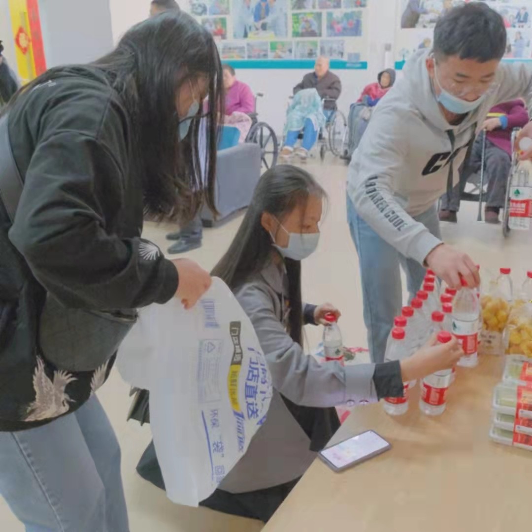 同学们把早就准备好的牛奶、糕点等慰问品送到了每一位老人的手中,贴心地为老人们服务,亲切地叫着“爷爷奶奶”,满怀热情地与老人交流、聆听老人的心事,了解老人们的身体恢复状况。