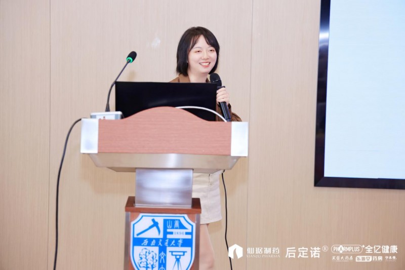 仙琚制药OTC事业部总监 泮小波先生 全亿健康成都事业部总经理何英女士随后发言。何英女士表示全亿健康深耕医药零售数十载,以特定理念发展,在成都拥有多个品牌药房,始终关注青年学子与女性等核心群体的健康需求。未来,全亿健康愿以活动为新起点,深化跨界合作,为同学提供健康实践平台,吸纳青年智慧升级服务。
