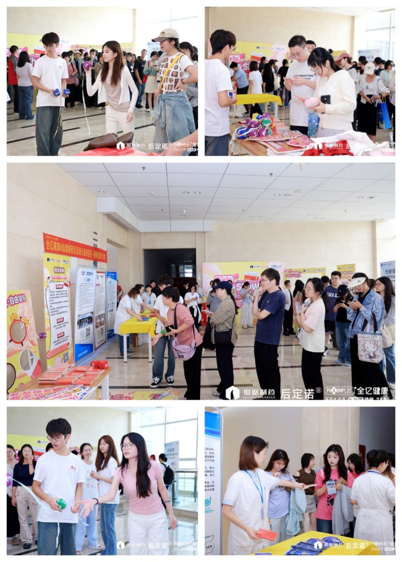 打卡C位引爆现场,青春体验赋能品牌 场内的讨论仍余音绕梁,场外的体验区已化作一片青春涌动的海洋。仙琚制药以“仙爱自己,后定人生”为主题打造的互动乐园,成为整场最具人气的聚集地——创意打卡装置、健康科普问答、限定主题文创,每一处都吸引学生踊跃尝试。他们三五成群,在游戏中默契配合,在欢笑中收获惊喜;更多人主动举起印有品牌slogan的手举牌,留下张扬又自信的影像。那一刻,健康知识与品牌温度不再抽象,而是可触、可感、可共鸣的生活主张。