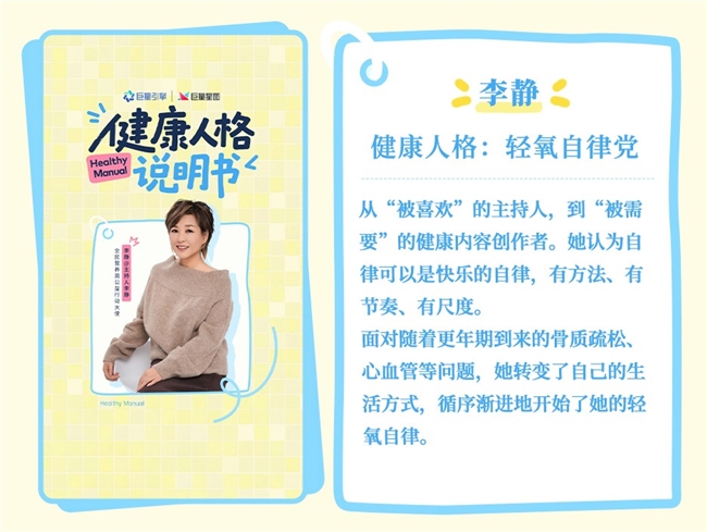 该IP通过专属话题、互动H5、品牌定制微综艺等系列组合玩法,为品牌构建起与目标客群深度对话、情绪共振的信任场域。不仅助力品牌实现从心智破圈到高效转化,更让品牌主张深度融入每一种健康人格的生活叙事,成为其生活方式的一部分。 聚焦情绪与健康需求,解码五大健康人格 当前健康消费存在一个普遍盲区:消费者清楚自己的选择,却难以定义“自己是哪种人”。这种模糊的认知,让品牌沟通难以深入。那么,如何让品牌精准对话用户?「健康人格说明书」IP通过科学的“人格”划分,将模糊的消费选择转化为清晰的自我投射,让品牌沟通不仅精准触达用户,更能引发共鸣、建立归属。 元气焕能青年是城市里的“间歇充电者”。他们在高压的职场节奏中,把健康拆解成3分钟拉伸、护颈仪养护和 “健康的熬夜”,用碎片化养护维系对生活的掌控感。他们追求态度亮相、结伴减肥,心动就下单,快买快收是他们的消费人格。