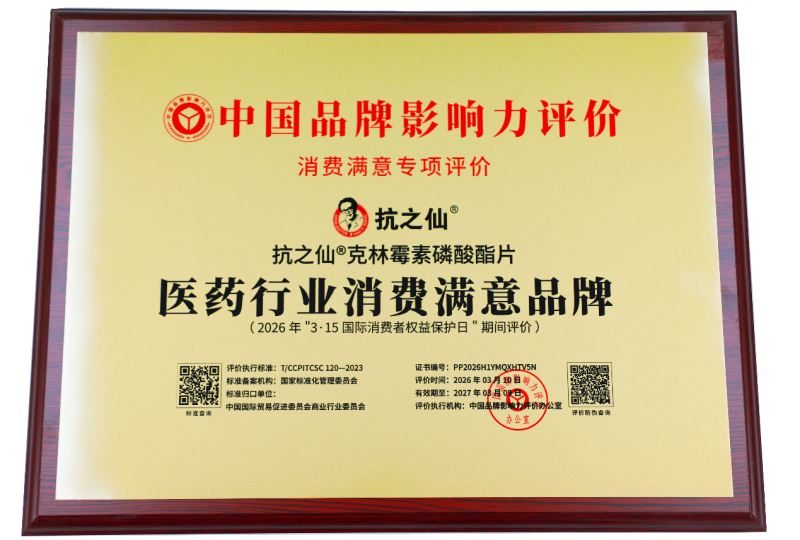 近日,在2026年中国品牌影响力评价消费满意专项评价暨3·15主题宣传活动中,山西好医生药业有限公司旗下核心产品——抗之仙®克林霉素磷酸酯片凭借卓越的产品品质、良好的市场口碑及深厚的品牌影响力,成功荣获“中国品牌影响力评价·医药行业消费满意品牌”称号。这一荣誉不仅彰显了企业在医药领域的品牌实力,也为消费者提供了更具信任度的用药选择。