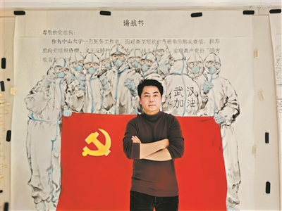![]() 姚友毅与《请战》 广州日报讯 (全媒体记者江粤军摄影报道)姚友毅是中山大学艺术学院副教授,同时也是中大校徽的设计者、中华人民共和国成立60周年庆典广东省彩车、上海世博会广东馆的主要设计者……在这个特殊的时期,姚友毅不仅自己马不停蹄地创作《众志成城》三联大画来为逆行者加油助阵,同时,他的一双儿女也齐齐拿起画笔,用画笔来表达对白衣战士的祝福,以展现对家园的守护。 七米巨作致敬白衣战士 1990年从广州美术学院教育系毕业后就到中山大学任教的姚友毅,在中大工作已经30年了,在25岁时还设计了中山大学的校徽,对学校有着极为深厚的感情。 大年三十晚上,回到家乡汕头的姚友毅,从电视上看到中大医学院医疗队响应号召,写下请战书,逆行前往武汉抗疫第一线。姚友毅觉得这些身边的同事们实在太伟大了,他的脑海里马上出现了一座丰碑的形象。 年初二从汕头回到广州后,姚友毅立刻投入了创作,要把这大写的“人”用画笔展现出来。”当时觉得如果画面不够大,无法体现心目中这些医护人员的形象,所以决定要画一张大画。”他把六张全开的素描纸贴起来,将最打动自己的请战书作为背景,以11名医护人员构筑成的“钢铁长城”为主角,以一面鲜红的党旗为前景,画出了《请战》的构图。11名医护人员,也正好代表了中山大学8所附属医院和3所专科医院。由于他们都穿着防护服,只露出了一双眼睛,因此,姚友毅主要通过人物炽热的眼神去展现大家的团结一心。整个画面,其他部分都用水墨来表现,只突出党旗的红艳以及每一位医护人员脸部、口罩、手套的颜色。 创作的过程中,姚友毅觉得单纯的出征场面还无法反映医护人员的英雄气概,应该将整个过程都展现出来。因此他决定采用三联画的形式——《请战》是其中的第一幅;第二幅表现白衣战士们抢救病人的场面,命名为《奋战》;第三幅为康复的病人与医护人员依依惜别的场景,命名为《胜战》,共同构成《众志成城》。 而每一幅作品为2.35米×2.2米的规格,三件拼起来超过7米,其创作难度也是超乎想象的。姚友毅表示,他动笔之前,没想到一张《请战》就用了十多天才基本完成。现在,第二张《奋战》正在创作中,第三张开始着手画草图。 通过画画深化孩子对生命的认知 姚友毅的创作时间,主要集中在晚上。白天他把更多的精力放在陪伴两个孩子身上。姚友毅的大女儿姚欣桐11岁;儿子姚欣阳7岁,两个孩子都颇有艺术天分。 这次疫情,在姚友毅看来,也是进行亲子交流教育的机会。他会给两个孩子讲新冠肺炎的科普故事,引发了女儿姚欣桐的创作兴趣。欣桐画了一幅《守护家园》。姚欣阳的《彩虹医生》,就是在姚友毅的引导下将“旧作”改画而成的。姚友毅说:“通过画画让孩子们懂得如何做人,才是艺术最重要的力量。” (责任编辑:Doctor001) |