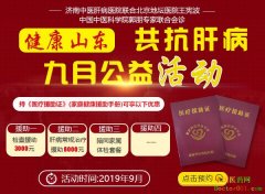 为了实现世卫组织2030年消除肝炎威胁的目标,同时也为了呼吁人们重视肝脏健康,提高关心肝脏健康的意识,济南中医肝病医院联合中国中医科学院肝病专家郭朋、北京地坛医院肝病专家王宪波等 于 2019年9月6日-2019年9月30日 共同举办健康山东 共抗肝病九月公益活动...