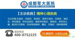 成都军大医院是经卫生行政主管部门审批、注册的正规资质医院,是一所专注神经、精神及心理疾病规范化诊疗的现代化、人文化、专科化医疗机构。医院秉承立院为公、患者至上、公益办院、诚信行医的办院理念,始终把医疗技术、医疗质量、便捷就医作为医院建设的核...