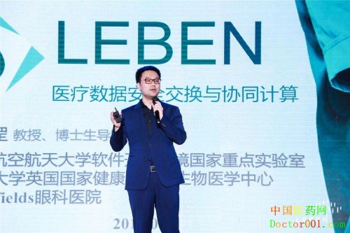 图3-LEBEN(同医)总经济师高坚博士发表演讲 中国电信集团区块链业务研发负责人梁伟主任发表了“如何通过数字经济推动中国医疗产业全球化”的主题演讲。他表示,将最前沿的大数据技术,应用于医联体底层技术架构体系中,可以通过低成本、高安全的方式,解决长期困扰医疗机构的“信息孤岛”和数据安全问题。