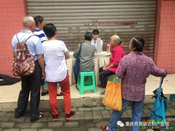 重庆育恩联合妇产医院来到钢堰小区为社区居民进行免费义诊。为社区居民免费咨询、测血压、血糖、发放健康教育宣传资料等,普及防病,治病的知识。