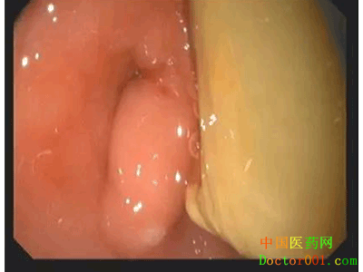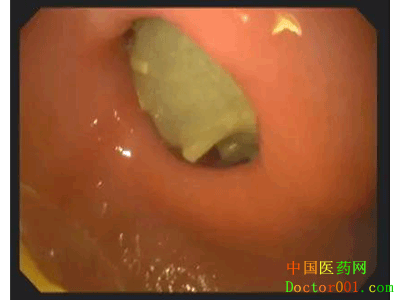 经积极抗幽门螺旋杆菌、抑制胃酸分泌、促进胃蠕动、保护胃粘膜治疗后患者腹痛症状消失。 复查胃镜提示十二指肠前壁可见一约3*5cm溃疡,溃疡附近可见2*3cm憩室,球后移行部可见3*4cm大小食物团块(食物已经下移)。患者十二指肠仍可见食物,异物钳钳夹,已腐烂。