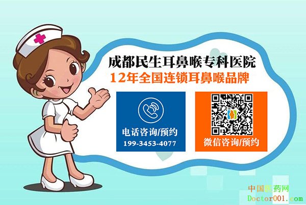 2、贴心的服务:实行“一对一”单诊室咨询服务,全面保障患者隐私,使患者能与医生放心的交流、沟通。【民生耳鼻喉诊疗中心咨询/预约电话:199-3453-4077(可加微信)】 3、透明的收费标准:严格按照成都市物价局和卫生局的统一收费标准。院内有循环显示屏公布价格,患者可清晰看清诊疗费用,同时还是医保定点单位,可实行报销。 成都民生耳鼻喉医院地址:成都市青羊区西玉龙街6号(骡马市地铁站G口直行200米)。【民生耳鼻喉诊疗中心咨询/预约电话:199-3453-4077(可加微信)】
