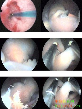 手术过程:①静脉麻醉后,置入宫腔镜探查宫腔内膜情况;