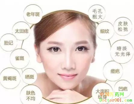 黑痣:大多是青春期以后逐渐出现,数个至数十个,针尖至米粒大棕色或黑色平坦斑点或突起丘疹,主要分布在面、颈部。 颧痣:青春期以后逐渐出现位于两侧颧骨或两眼外侧下方灰蓝色针头至米粒大小的群集斑点,少数患者有家族性遗传, 肝斑:25岁以后逐渐增加的棕色斑,大多呈对称出现在两侧脸颊。颜色与煮熟的猪肝相似,因此称作肝斑,与肝病无关。 太田母斑:一般在一侧脸的上半部出现灰蓝色斑驳斑块,甚至眼球巩膜也会有灰蓝色,色素深至真皮层。