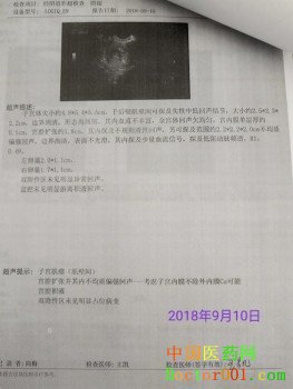 子宫癌患者治疗前B超图 2018年9月10日,秦皇岛张女士56岁,确诊为子宫癌,2018年9月20日,患者开始使用立信牌弱碱性复合功能活蛋白。当时患者从阴道里分泌出来恶毒汁是黄颜色的,使用弱碱性复合功能活蛋白大约15天时间,患者不在分泌黄颜色的恶毒汁了,表明病情已经得到明显改善与康复。 2018年10月13日,子宫癌患者在她女儿的陪同下来济宁体内取栓。靳光祥用“量子医学”取栓技术5次给患者取出血拴斑块足有1市斤多,还有很多瘀滞在体內的湿气,換言之这些滞留在体內多余的水分就是尿之余。左行气,右行血;在给患者体内取出湿气的时候,粘稠的糊状血栓在湿气的推动下形成红颜色泡沫,泡沫就象烧开的粥锅那样在量子罐內不停的翻腾。