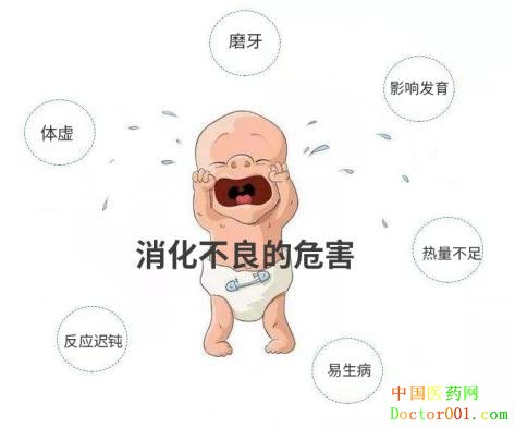 消化不良有哪些危害? 消化不良虽说是婴幼儿常见病症,但家长们务必注意,时间过长很有可能会导致严重后果。 1、容易导致宝宝体虚,常出虚汗 出汗跟消化是有很大关系的,很多宝宝由于长期饮食不当,就会导致排汗系统紊乱,从而经常性出虚汗,导致感冒。 2、睡觉磨牙 磨牙的诱因有很多比如孩子换牙,口腔有炎症等,其实消化不良也是一个因素。 3、比较容易出现过敏现象 一些宝宝在肠胃不好的时候,之前吃了不过敏的食物,现在吃了反而出现过敏的奇怪现象。 4、影响身体发育 消化不良导致宝宝没有食欲,易出现偏食现象,进而影响宝宝对营养物质的吸收。宝宝正处于身体发育重要时期,消化不良对宝宝的影响是相当大的,严重可能会影响宝宝的体态特征及智力水平。 5、会使宝宝身体热量不足 由于食物很难被消化,就很难产生热量来维持身体内部的恒温环境。 6、宝宝容易生病,反应迟钝 宝宝长期处于肠胃不良的状态会导致身体虚弱、营养物质跟不上机体的需求,宝宝会很容易感冒、注意力不集中。
