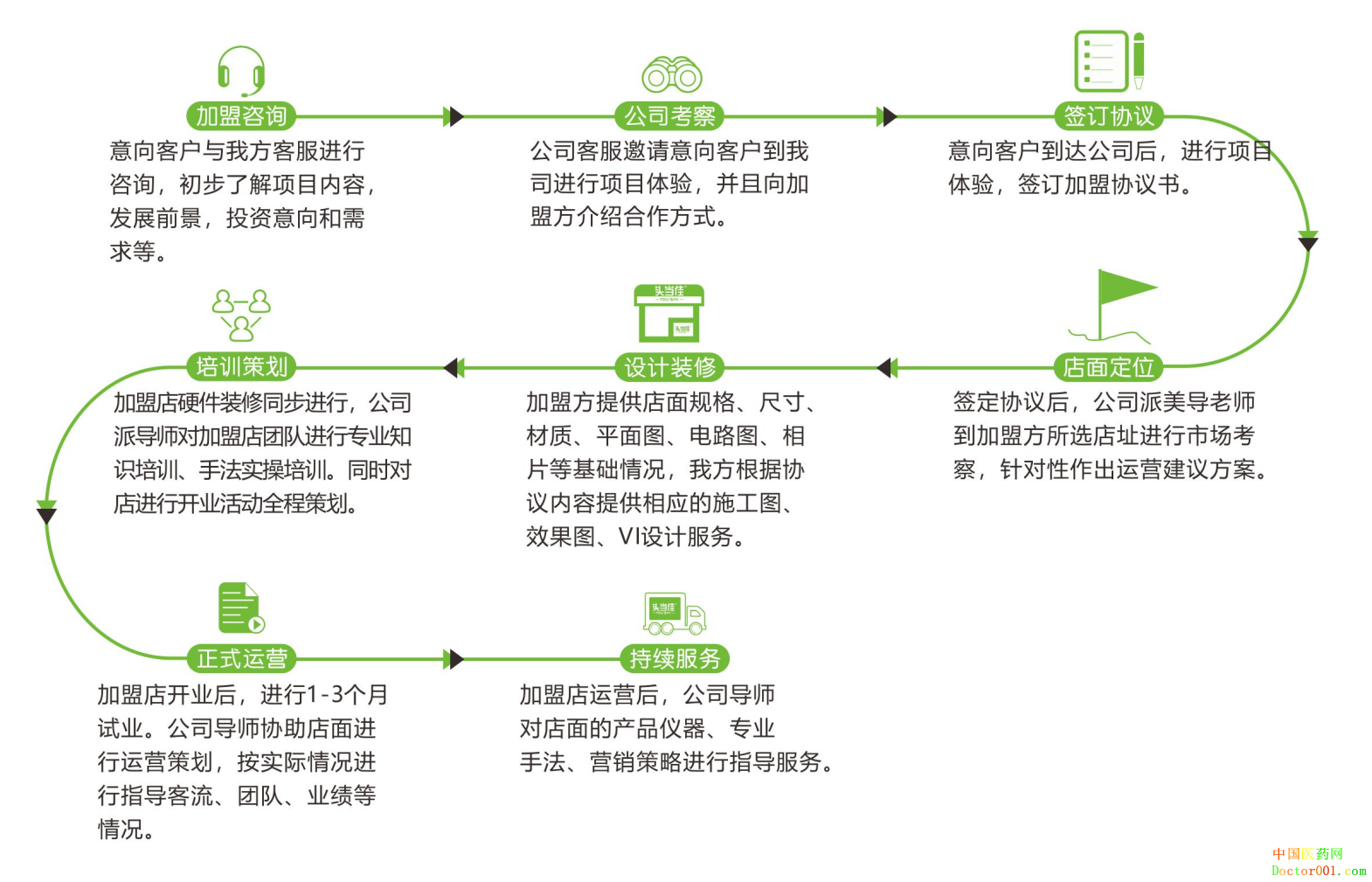 头当佳十大整店输出优势 1、高品质产品输出 广西大瑶山中草药原材料基地,正宗专业产品输出,保证品质。整店输出,获取价值超百万全系列产品,超低折扣产品持续供应。 2、整店CIS系统输出 公司整套输出VI视觉识别系、BI活动识别系统、MI理念识别系统。一站式独家定制整店输出系统(开店选址、图纸设计、装修指导、监工验收、软装设计、风水设计、场景设计、灯光设计、广告形象设计等五感设计) 3、专业技术设备输出 公司提供专业专利的设备,并一对一进行系统化使用培训。如:头疗养生大师、专用豪华熬药桶、头部养生头等舱。 4、系统营销体系输出 公司强大营销团队为整店做当地最有效的营销方案。 5、持续全面品牌推广 在线下户外广告、线上网络推广、新媒体、自媒体渠道进行持续品牌推广。 6、精准客户引流输出 赋予价值百万新媒体营销培训,精准线上客户引流输出。 7、落地人才培训支持 专业团队定期对加盟店人员进行手法培训、接待培训、销售培训。 8、完善售后服务体系 选择了头当佳就是我们服务的开始,公司整套售后服务体系为加盟店的发展保驾护航。 9、成熟店面运营体系 开店仅仅是开始,得当的运营才能注以强大的发展动力,头当佳在人事管理、业绩管理等方面全力支持加盟店。 10秀店长顾问输送 金牌店长输送,及公司全方面人力、物力协助支持。 10大优势8大流程 超100万加盟好礼助您走上财富新蓝海之路!