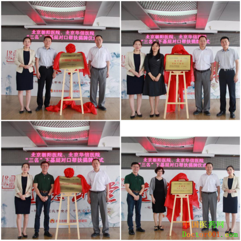 朝阳区妇幼健康“三名”下基层授牌仪式现场 授牌仪式上,张瑞与夏荣明、李晓北、刘芳分别为“首都医科大学北京朝阳医院产科基层工作站”、“路军丽名医工作室”、“北京华信医院新生儿科基层工作站”、“王俊怡名医工作室”揭牌。
