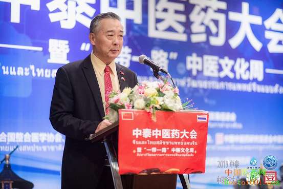 (联合国整合医学协会理事长黄濬淼主持会议) 泰国中医药学会会长陈少挺先生、泰国中国健康产业发展促进会会长邱谦先生受邀出席会议并致辞。陈少挺表示,中医药在泰国应用的历史悠久,为泰国的医学做出许多贡献。他相信在大家的努力下中医药在泰国将有一个广阔和美好的前景。邱谦表示,在泰国,卫生事业发展较快,是世界热带病学的中心,中医药在泰国发挥了很大的作用,为泰国人民的卫生保健事业作出了巨大贡献。