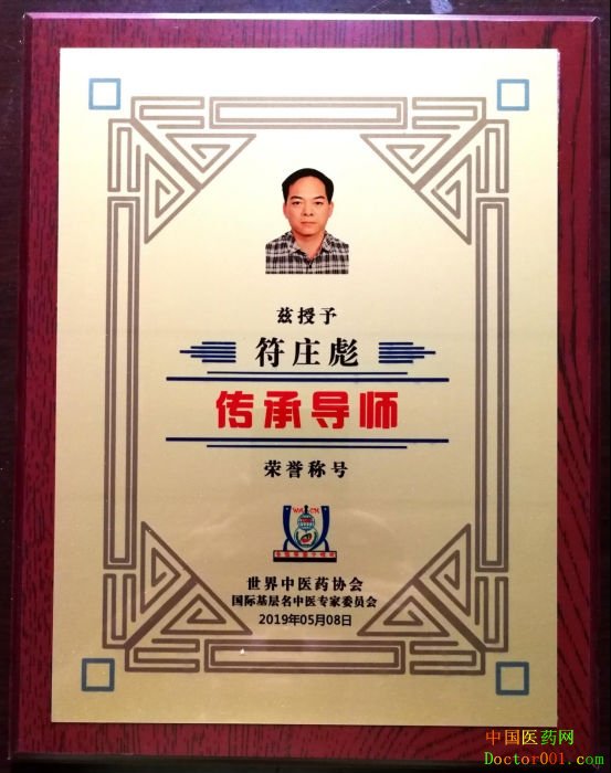 符庄彪人物形象照 符庄彪(庄忠彪),1973年9月生,海南省临高县人,中共党员,毕业于海口市中医药学校及北京中医药大学,深造于中国药科大学中药学本科,学士学位,高级针灸师,中医健康调理师,现任临高临城寿南山榕强药房负责人,中华国医经方高级研究员;世界中医学会联合会理事,北京世界针联浮针中医研究院“特聘专家”;《中国当代名医》及全球中医智库联盟智库专家组“套针传承人顾问”;世界中医药协会、国际基层中医专家委员会“传承导师”;国医网健康顾问委员会“副主任委员”;入驻决策中国网、中国影响力人物数据库成为“榜样的力量”;华医头条网华医头条影响力人物数据库“健康顾问”,《大健康中国梦》专刊“编委”;中国未来研究会科技未来研究分会第三届理事(2016-2020);中国民间中医药研究开发协会浊毒研究分会常务理事。 获得如此成绩在符庄彪看来,这和他的家族历史以及自幼接受的家庭教育密不可分。符庄彪的爷爷早年是乡村大夫,符庄彪从小便受到医药的熏陶,对中医有着浓厚的兴趣。少年时父亲生病,在求医期间,他萌生了成为医生的念头。