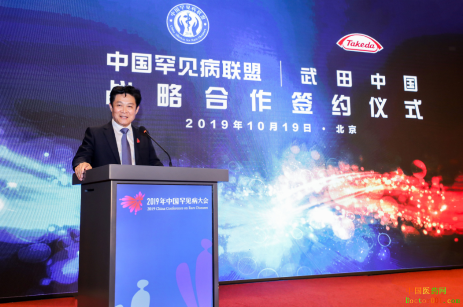 ——武田中国与中国罕见病联盟在京达成战略合作意向 2019年10月19日,北京 — 10月19-20日,2019年中国罕见病大会在京召开,大会期间,全球罕见病领域的领航者武田中国与中国罕见病联盟正式签署战略合作意向书。双方希望在未来三年内,通过一系列举措共同促进中国罕见病临床诊疗和疾病管理综合能力建设,全方位地改善中国罕见病诊疗现状,共同打造以患者为中心的中国罕见病创新生态系统,从而更好地解决患者未被满足的需求,以改善罕见病患者的生存质量为最终目标。 中国罕见病联盟执行理事长、中国医院协会副会长李林康;中国罕见病联盟副理事长兼秘书长、北京协和医院副院长兼党委书记张抒扬;武田中国总裁单国洪;武田中国副总裁、准入卓越部负责人娄渝等嘉宾出席此次签约仪式。