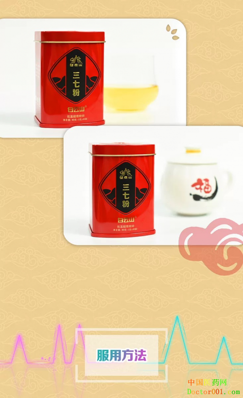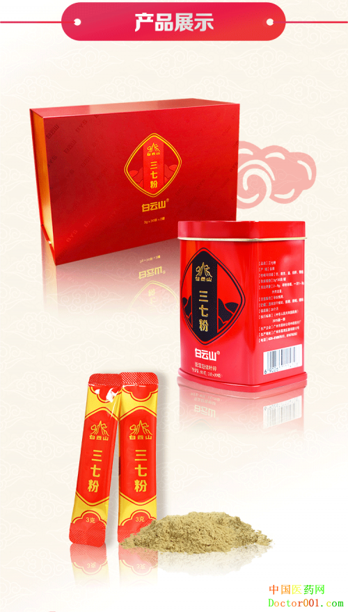 白云山三七粉,健康养生,必不可少! 1、为虚弱的人“强身” 近代药理试验研究证明,三七粉能增强机体新陈代谢,调节生理机能,提高免疫功能,有抗疲劳、抗衰老、增强体质以及让身体保持健康的作用。此外,三七粉能有效防治心血管、肠胃、肝脏、糖尿病等疾病,对于近代年轻人的神经衰弱症也有较好的疗效。近年报道,三七粉还有预防、抑制肿瘤生长和修复化疗损伤等功效。 2、为久坐的人“通血” 久坐习惯极易引起血滞不畅,再加上平日高热高脂等饮食习惯以及压力大的通病等都会增加血管堵塞的风险,使血淤堆积、血液粘稠从而引发“三高”等疾病。现代医学认为,三七粉中含有的三七皂甙和黄酮类等有效成分,有强心和扩张疏通血管的作用;中医认为,三七粉具有活血化淤、清理血液垃圾,增加血液氧气、保健心脑血管的功效。