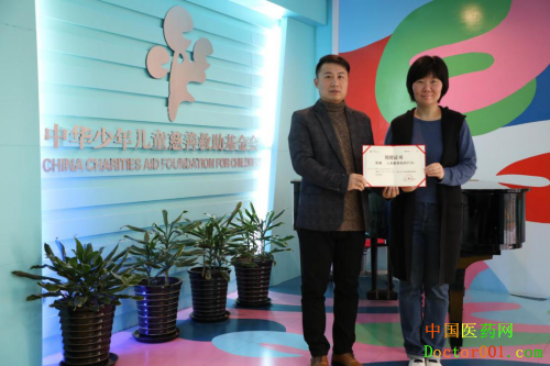 (与中华儿慈会副秘书长姜莹女士合影) 据悉,中华少年儿童慈善救助基金会于2010年1月12日在京成立。2018年9月10日曾荣获第十届“中华慈善奖”。协会坚持以慈为怀,从善如流,呵护未来,促进和谐,倡导人人助我,我助人人。