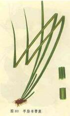 | 【标题】 树韭菜 【拼音】 Shù Jiǔ Cài 【英文】 Fudzino Grass Fern 【拉丁文】 Vittaria fudzinoi Makino[V.suberosa Christ] 【异名】 龙须草、木莲金、丝带蕨 【性味】 微温;微苦;无毒 【归经】 肝;胃经 【功效】 理气;活血;止痛。主跌打损伤;筋骨疼痛;劳伤痛;胃气痛;小儿惊风;疳积;目翳;干血痨 【药用】 为书带蕨科植物平肋书带蕨的全草。 【注意】 孕妇忌服。 【用法用量】 内服:煎汤,15-30g,大剂量可用至90g;或泡酒。外用:适量鲜品,捣敷。 【形态】 多年生附生草本。根状茎短,斜上;须根细密。叶簇生,基部被鳞片,鳞片长钻形,粗筛孔状,棕褐色;叶几无柄;叶片狭线形,长30-40cm,宽3mm,叶上面中脉两侧有两行纵沟,下面中脉平坦;叶革质,淡绿色,叶脉不明显;孢子囊群近边缘着生;孢子两面形,平滑透明。 【生态环境】 附生于1300-2800m的林下岩石或树干上。 【产地】 分布于西南及浙江、江西、福建、湖北、广西等地。 【采收加工】 全年可采,洗净,鲜用或晒干。 【性状】 性状鉴别 根茎短,基部生有棕褐色鳞片。叶簇生,几无柄;叶片革质,狭线形,长27-29cm,宽3-4cm;上面中脉两侧有2行纵沟,下面中脉平坦。孢子囊群沿叶边缘着生。气微,叶苦、涩。 【图片】 平肋书带蕨 ![]() 树韭菜 (责任编辑:Doctor001) |