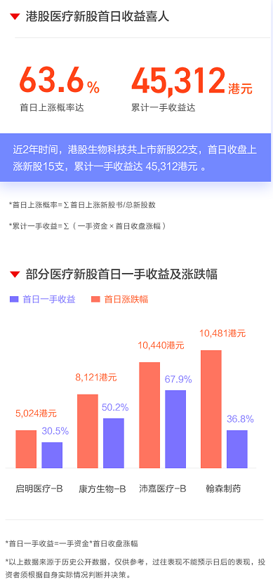 轰轰烈烈的网易京东打新终于告一段落,本周又有三只生物医疗股即将启动招股:港股的康基医疗和海吉亚医疗、美股的泛生子。跻身近年来热度爆表的生物医药板块,这三家公司继续趁着这波吃肉热潮赴港上市,可谓把握住了最好的时机。 从今年上半年的表现来看,上市的几只医药新股暗盘及上市首日全部大涨,是港美股打新中名副其实的“大肉签”。其中,以港股上市的医药新股涨幅最为喜人,今年涨幅最高的当属沛嘉医疗-B(09996.HK),在上市前一天的富途证券暗盘中涨幅高达65.69%,而在上市首日收盘涨幅甚至高达67.96%,打中一手并卖出收益可超1万元。