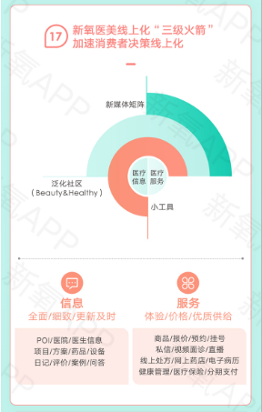 目前,新氧平台的“美丽日记”已超过350万篇,对影响购买决策、提升复购率形成有效帮助。此外,在专业内容的打造方面,目前新氧平台已有25000多名具有资质的整形医生与近6000家医美机构入驻。而在“三级火箭”的引导之下,新氧线上用户渗透率已经远远超过其他平台。