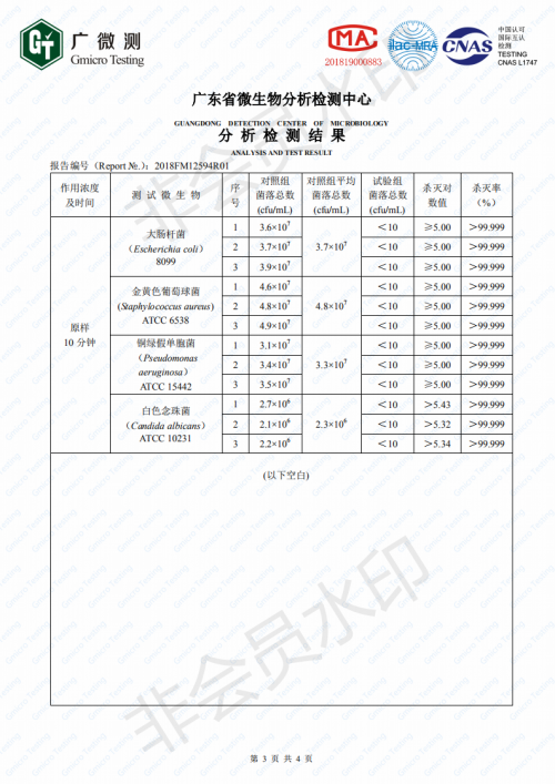 权威认证 杀菌率99.99% 经权威机构检测 除菌卡对H1N1等流感病毒 的灭活率可达99.99% 且安全、无毒、0刺激
