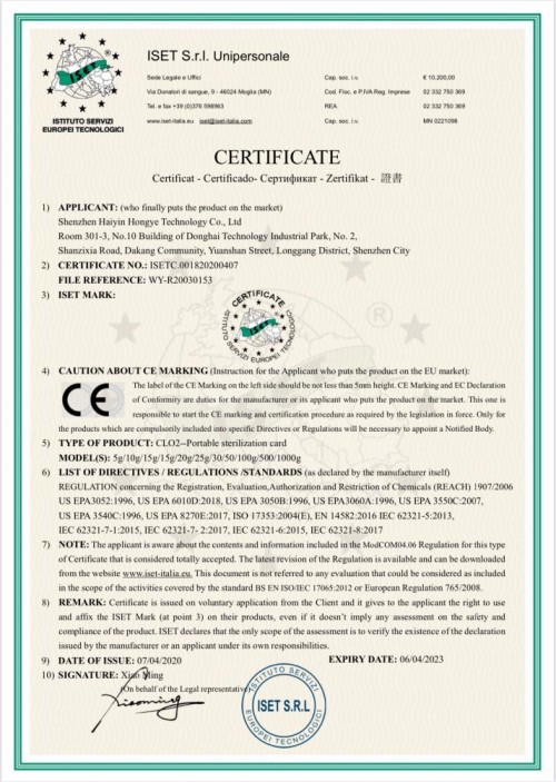 国际公认 安全无毒 除菌卡中的有效成分是 缓释型固体二氧化氯 是国际上公认的安全、无毒的绿色消毒剂 通过与空气接触 释放的抑菌粒子可以吸附在衣服上 犹如一层保护屏障 阻挡病菌入侵,并杀死细菌、病毒和真菌