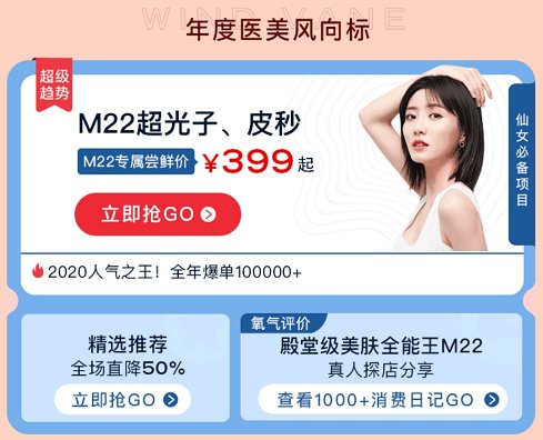新氧还设置了“名医面诊专区”,最低0元面诊,足不出户,安心变美。此外,直播互动可赢千元大礼,更有1元专属好价皮肤项目。对于黑卡用户,新氧更是诚意满满,12月1日至19日,总价值为4350元的变美红包限量送,还可做专属任务得预约红包。 医美风向标,年度好评榜 基于洞察提供可信赖的参考 在满足用户“质优价良”消费需求的同时,新氧还在分析平台大数据后,基于洞察推出医美风向标、年度好评榜等活动专区,为求美者提供值得信赖的趋势参考。 在科技推动和需求精专的2021年,掌握全新变美解法是十分有必要的。每周一更的新氧2021年度“医美风向标”,将为老用户提供新思路,也让新用户可以“抄近道”。12月8日至14日,M22/超光子/超皮秒专属尝鲜价399元起,实乃仙女必备的入门级项目;12月15日至21日,FOTONA 4D热拉提好物种草价3099元起,明星级抗衰项目轻松得。