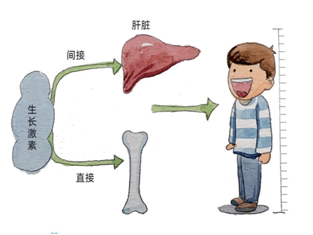原来生长激素是兵分两路进行工作的,一路通过刺激肝脏等组织产生胰岛素样生长因子(IGF-1)促进我们长高;另一路则直接作用于生长板,刺激骨细胞代谢,从而使我们长高。