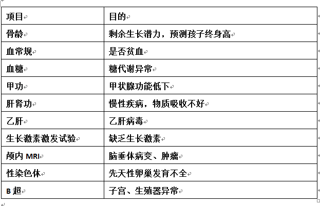 长期目标:使患者成年终身高达到理想身高 矮身材儿童检查项目: