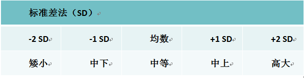 影响身高因素: • 遗传:父母及其家族的身高与子代身高相关 • 营养:可通过影响基因表达来影响孩子的身高 • 疾病:遗传代谢疾病,产时窒息缺氧产伤等 • 其他:受虐待等 吃好、睡好、动好、身体好 遗传身高预测方法 又称靶身高 – 男孩:靶身高= (父身高+母身高+13)/2± 5(cm) – 女孩:靶身高= (父身高+母身高-13)/2± 5(cm) 如何促进儿童健康生长? J 合理营养:牛奶鸡蛋 J 充分睡眠:睡得香 J 户外活动:弹跳 J 心情愉悦:关爱不娇纵 J 少生病: 怎样发现孩子是否矮小? • 身高、体重和坐高 • 生长速率,即每年身高 增长值(cm /年) • 性发育状况 • 畸形特征 如何确认孩子矮小? • 标准差法: 身高低于同种族、同年龄和同性别平均身高的-2个标准差 > +2个 > +1个 > 标准 > -1个 > -2个 > 身材高大 中等 矮小 • 百分位法 97 ------ 75 ------ 50------ 25 ------ 3 身材高大 中等 矮小 • 年生长速率:低于 5 cm。 中国0-18岁儿童、青少年身高标准差单位数值表的解读 身高标准差单位数值表