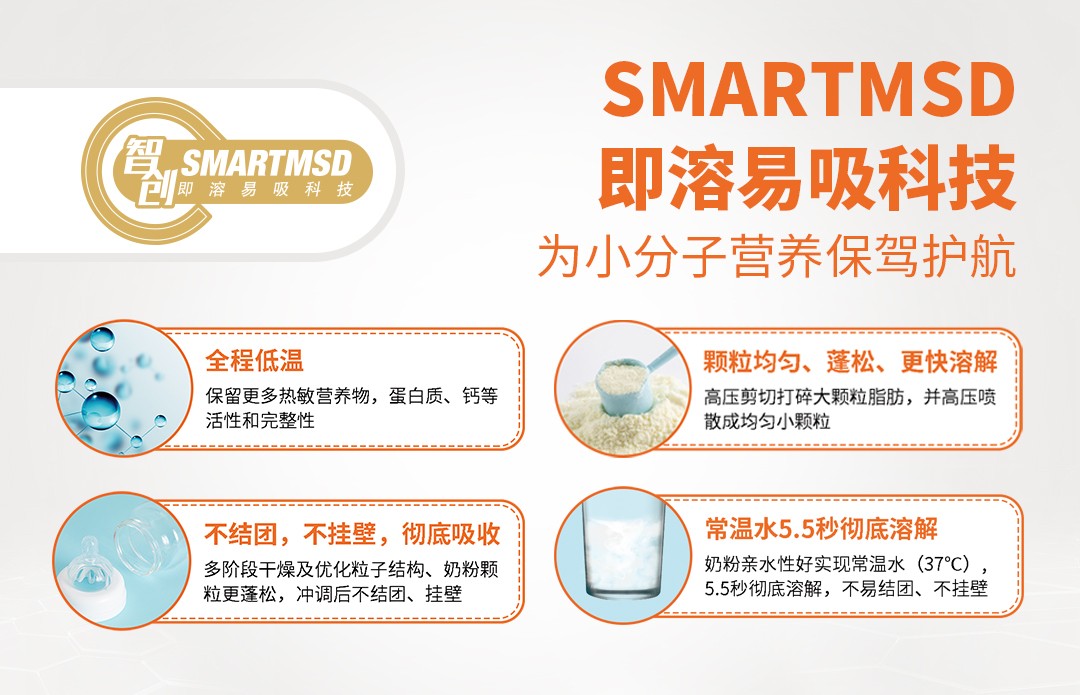 作为“消化吸收系”婴配粉开创者的喜安智,专注于宝宝娇嫩肠胃更好呵护,不断在配方上精进,从国内较早添加OPO结构脂、乳铁蛋白LF到益生菌、益生元到适度双水解蛋白质、MCT、MFGM等。技术上,为了保留更多营养活性,领先的智创SMARTMSD即溶易吸科技全程低温保驾护航,有效保留更多热敏营养素活性。同时,用高压剪切打碎大颗粒脂肪,喷散成均匀的蓬松小颗粒,让喜安智在37℃的常温水中实现5.5秒彻底溶解,不易结团、不挂壁,真正做到“溶解吸收看得见”,收获万千妈妈认可。