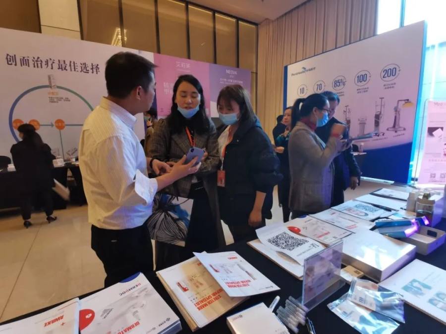 直击展台 大会现场,设有多个展位展台,崧洋旗下专注于孕纹修复与预防品牌——安美科及专注于皮肤屏障修复品牌——戴摩道克,此次也亮相大会,在大会现场设有展台,获得与会人员诸多认可,现场咨询人士络绎不绝。