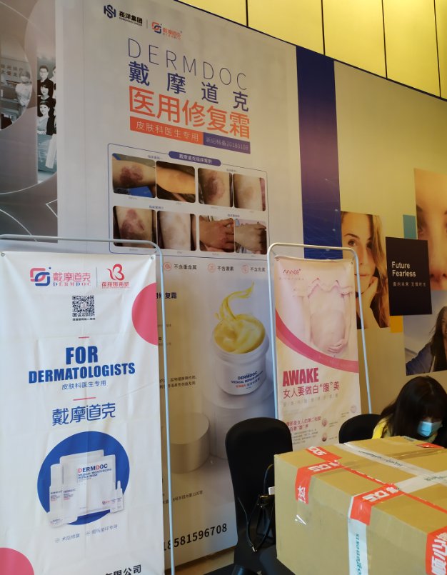 现场,戴摩道克系列产品,医用修复霜、医用冷敷贴、医用修复喷雾、重序敷料4款产品在现场展出。其独创“四维修复、治养结合”的精准医学护肤理念,吸引一众人士前来咨询产品功能、效果。