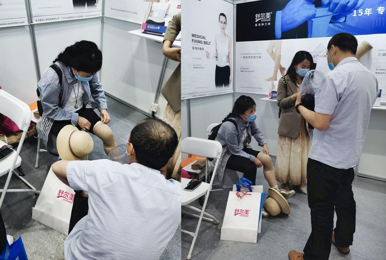 北京时间2021年5月24-26日,以“军民融合,高端智能”为主题的第三十二届国际医疗仪器设备展览会(以下简称为CHINA MED 2021)在北京国家会议中心开幕。作为中国首家通过国际展览业协会(UFI)认证的国际医疗仪器设备展览会,CHINA MED 2021结合各种学科权威、专业的学术论坛活动,进一步推进医疗科技项目与军队及地方医疗机构对接,为临床医师提供智能化医疗技术及应用。 作为国内创新型医用弹力袜领导品牌,此次展会舒尔美携下肢静脉疾病的预防和治疗解决方案如期而至,充分展示了行业前沿的创新技术以及为腿部不适病症患者提供专属定制服务的实力,备受瞩目。