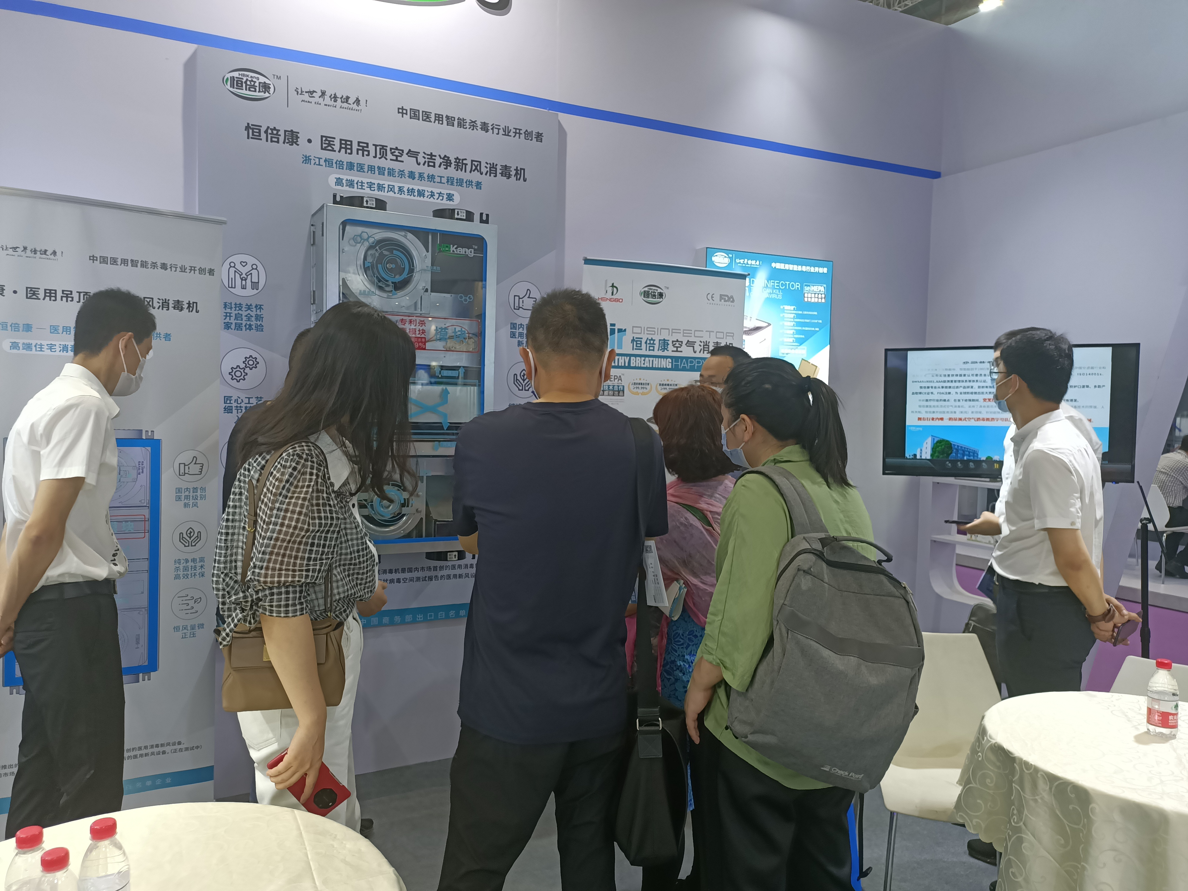 现场,位于5.2H292展位的恒倍康系列产品,以其美观大方的外观设计,精益求精的产品细节和优质的品质吸引着来往嘉宾驻足。一台台闪烁着高科技光芒的医用吊顶空气消毒机,以及HBKKD-PE系列消毒新风、医用级除湿机、医用级立柜式除湿机、高效医用杀毒净化箱、医用级空调新风系统等,吸引着一波又一波的人群。 ![]() ![]()