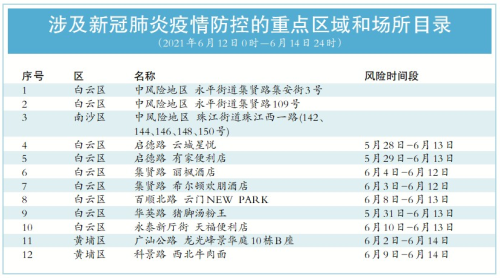 12日-14日新冠病毒感染者涉及的重点区域和场所