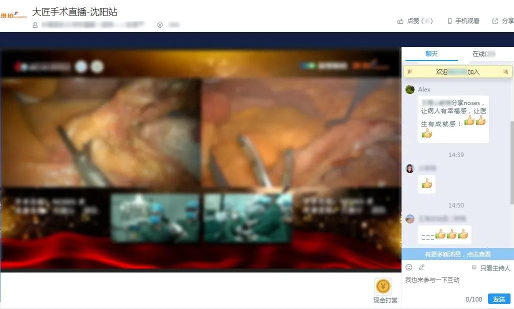 大匠 NOSES 手术直播教学讲解 (图片已做模糊化处理) 更多医生有机会远程参与到顶级医生的手术直播观摩。保利威直播支持4K超高清毛孔级别画质,同时可接入摄像机和内窥镜等可视化专业医疗设备,而在直播过后,还可以方便地进行转存、回看。 保利威提供的手术直播技术支持有效地避免人员混杂带来的手术室空气污染等问题,也为医生和学者们提供了一个更为真实的学习交流场景。 (三) 结语 后新冠疫情时代,健康教育将成为公共教育的重要一环。抗击疫情需要彻底改变每个人的行为,一个完善的、强大的公共卫生体系则是实现“健康中国”战略的基础和保障。 北京大学国家发展研究院教授刘国恩指出,推进 “健康中国” 战略,需要医疗服务供给、公民个人健康行为和社会健康环境改善三方力量共同加入。 我们期待,保利威直播将作为数字时代的基础设施,助力上述三方力量,实现“健康中国”的美好蓝图。