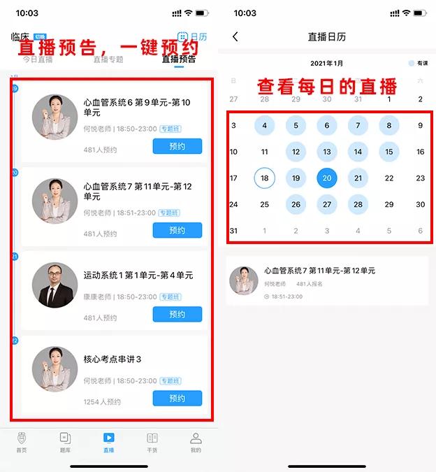 润德教育App直播预约界面 保利威与专业医疗培训机构“润德教育”广泛合作,针对医学执照考试人群,保利威提供的PRTC无延迟直播可让上万名学员同时在线,实现线上和线下无差别的教学“真”互动。而在课后,学员还可以点播回看功能,巩固知识点。 02 远程问诊