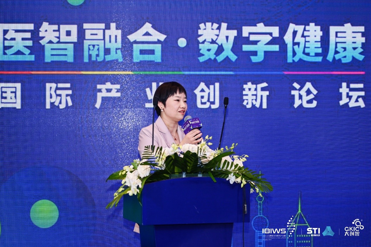 上海市经济和信息化委员会副主任张英 上海市卫生健康委员会副主任赵丹丹论述了数字健康产业发展的宏观趋势,并强调了“医智融合”将对生物医疗行业产生的重要改变。