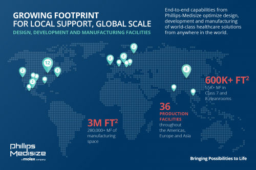 Molex莫仕医疗和制药解决方案总裁Paul Chaffin表示:“作为全球领先客户的首选合作伙伴,我们不断投资于新的人才和技术,提升Phillips-Medisize在整个价值链的产能和能力。我们日益扩大的全球步伐和资源将使我们能够应对复杂的开发和制造挑战,同时满足客户日益增长的更本地化的生产、供应链管理,以及加速进入市场战略的要求。” 为全球规模不断增长提供本地支持