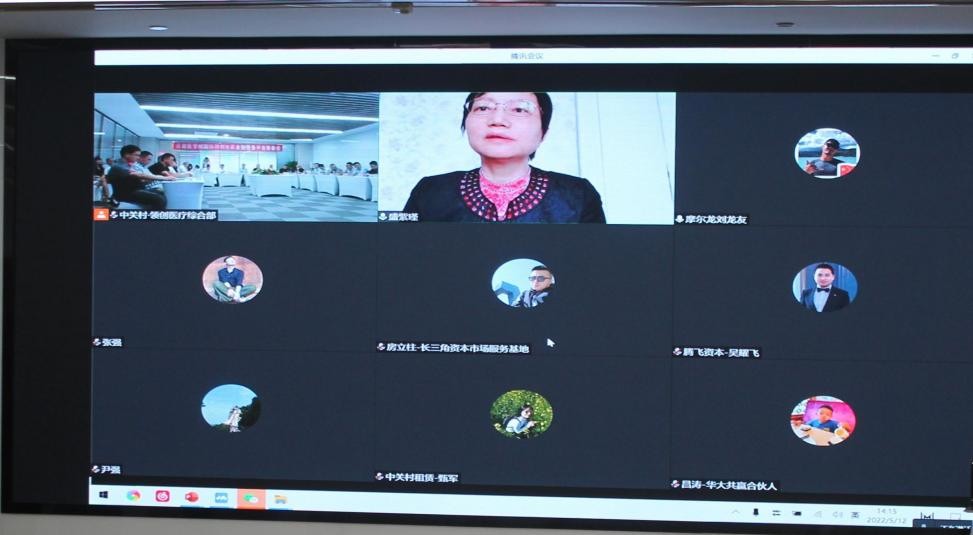 中关村.北京领创医疗公司总经理盛紫瑾通过远程视频发言,对平台的建设做了充分的建议,表示将携中关村.北京领创精准医疗健康产业投资有限公司的资源和产业招商运营经验赋能金融平台共同发展。