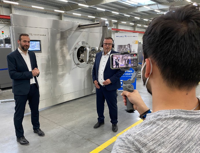 One of the items on the agenda at the Romaco seminar was the potential energy saving enabled by hot melt coatings in fluid bed processes, which offer up to 85 percent shorter processing times. The demonstration of Romaco Innojet’s VENTILUS® Lab was a chance for the participants to see for themselves the granulates’ excellent flow properties and very good compressibility. In the case of natural products, these can be manufactured without any additives and with no added preservatives. Romaco Kilian’s contribution was dedicated to the issue of product loss during tableting in production and the development of new tablets. Attendees gained a thorough insight into how a tablet press’s material consumption can be significantly reduced through design measures and press simulations. The joint Tecpharm and Colorcon workshop discussed the application of titanium dioxide-free tablet coatings. Titanium dioxide is regarded as hazardous to health and will be banned from food in the European Union as of August 2022. Due to their high level of process control, Tecpharm’s tablet coaters make it easier to switch to alternative additives, not least because the technology can reduce spray loss by up to 60 percent. On the packaging technology side, Romaco and its partner Huhtamaki shed light on the production of paper blisters using the Unity 300 blister line from Noack. As eco-friendly unit dose packaging, paper blisters are particularly suitable for use in the nutraceutical and food industries. Furthermore, Promatic cartoners support safe processing of recycled packaging materials. Huge demand for live stream presentations